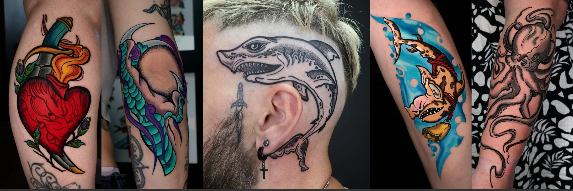 He’s passionate about crafting fun, eye-catching pieces that pop on the skin. Each tattoo is created with care and precision, making his work instantly recognisable and built to last.